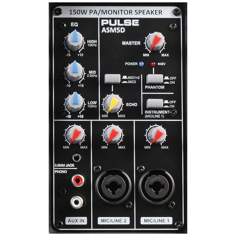 The ASM5D is a high quality and versatile portable “on the spot” sound reinforcement solution for all kinds of live events, conferences, meetings and education. It also configures as a very useful personal monitor system for practice sessions and all kinds of solo/band performances, including keyboard players, guitarists, drummers and a useful piece of additional equipment for live DJs.